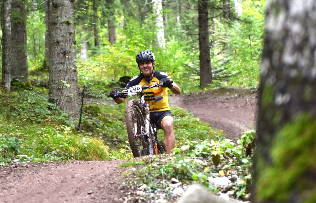 Het parc fermé is direct aan het meer. Het strand bestaat uit kiezelsteentjes waar je niet te lang op wilt lopen, maar dat hoeft dan ook niet. Het bike parcours start met 2 kilometer langs het meer, met aansluitend de bosweg/pad richting Andalo. Klimmen, maar niet te gek en genoeg ruimte om in te halen of ingehaald te worden. Ondergrond: gravel. Bij Andalo (net niet te zien vanaf het parcours) steek je de provinciale weg over en begint een serieuze klim: hier wordt de eerste verschillen gemaakt. Aan het einde van de klim een weilandje over, een listige drop naar beneden en dan via boomwortels en bospaden omhoog. Klimmen, klimmen, klimmen met hier en daar een korte afdaling. Via de eerste verzorgingspost weer verder tot een brede bosweg. Klein lusje door het bos (overbodig, je komt na 2 minuten weer op hetzelfde pad uit), en dan richting het downhill parcours van het Molveno Bike Park. Via de ‘Bladerunner’ (210 meter) en de ‘Goonies’ (90 meter, maar wel moeilijker) vallen we naar beneden. We komen boven in het dorp uit en worden alleen afgeremd door wegafzettingen die zijn neergezet om onze snelheid te breken.